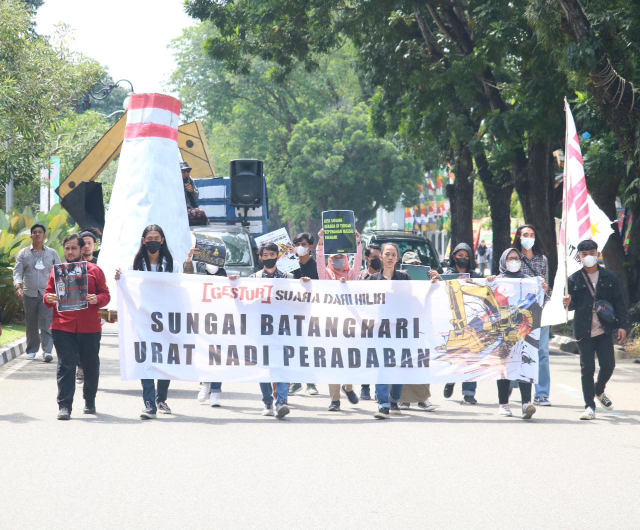 Patriotik.co – Pada peringatan Hari Pohon sedunia tanggal 21 November 2021, Gerakan Suara Tuntutan Rakyat (Gestur) Jambi melakukan aksi turun kejalan. Dimulai dengan titik kumpul di Universitas Batanghari (Unbari) Jambi menuju Simpang Bank Indonesi (BI) dan Gedung Dewan perwakilan Rakyat Daerah (DPRD) Provinsi Jambi, Kamis (25/11).