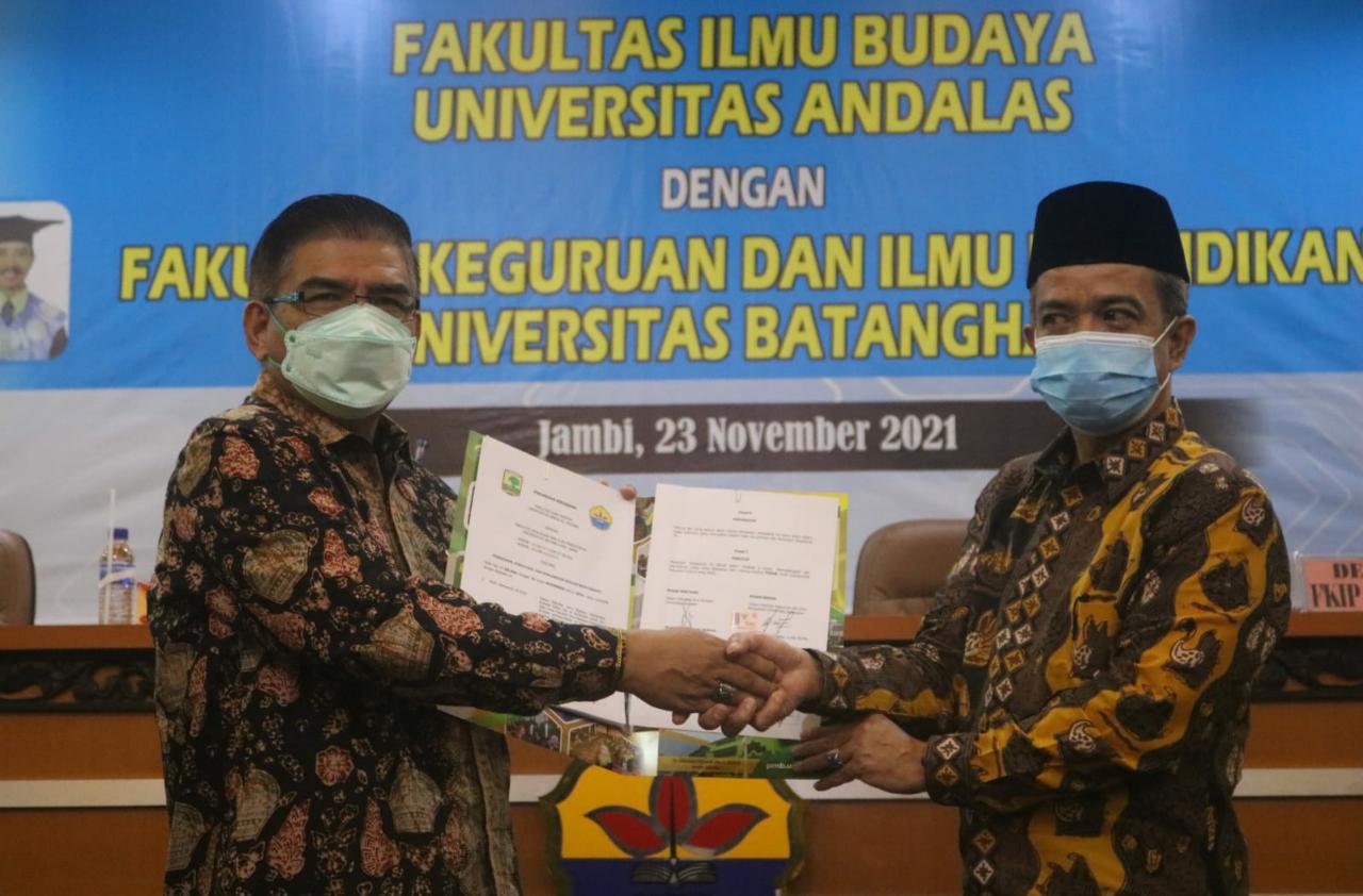 Patriotik.co – Fakultas Keguruan Ilmu Pendidikan (FKIP) Universitas Batanghari (Unbari) Jambi melaksanakan Memorendum Of Understanding (MOU) dengan Fakultas Ilmu Kebudayaan (FIB) Universitas Andalas (Unand) Padang dalam bidang “Pendidikan,Penelitian dan Pengabdian Kepada Masyarakat”, bertempat di Aula Abdurrahman Sayoeti Unbari, Selasa, (23/11/2021).